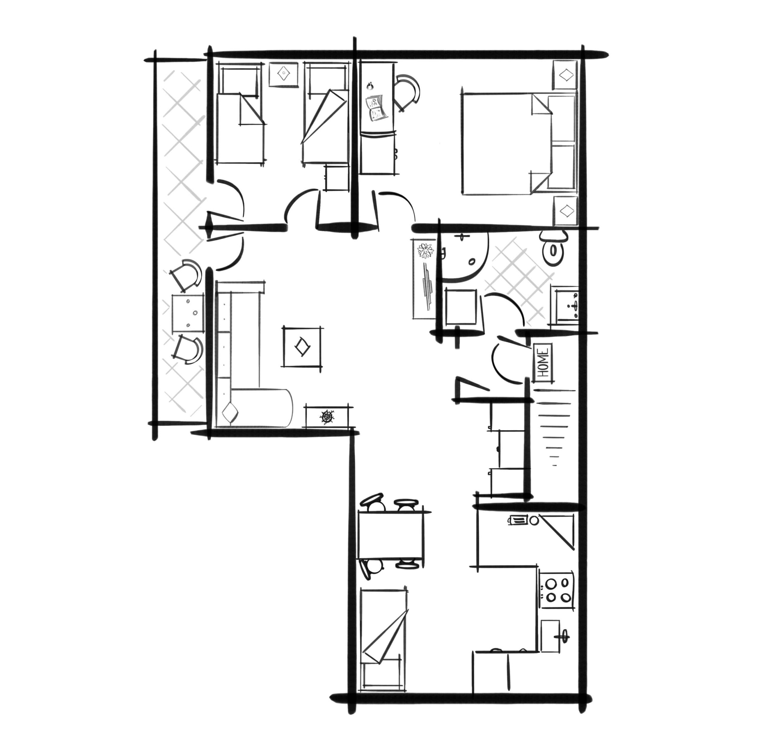 Living room opens up on to the balcony, it stretches the view to the mountains and overlooks the parking lot. Kitchen shares the space with living room, it includes refrigerator, frezzer, toaster, filter coffee machine, the water heather with different kinds of teas, sugar, …).